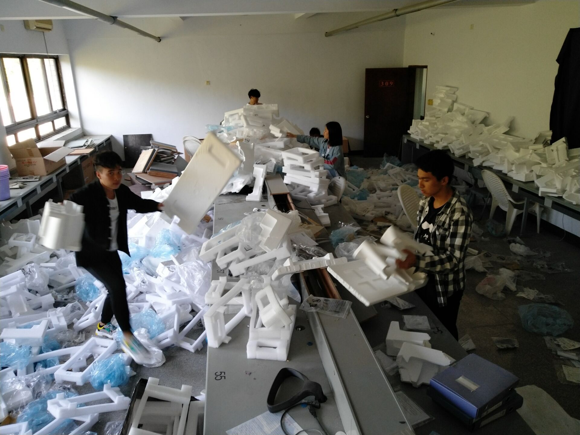 阳春三月,学“雷锋月”如期而至。3月21日下午,16网工2班的全体小雷锋们来到泽钏楼资源打扫卫生。两人一组,三人一间,拿着扫帚,挥着抹布,仔细的把每个角落的垃圾都清理干净,在一个下午的劳动中,把泽钏楼的实验室打扫得干干净净。