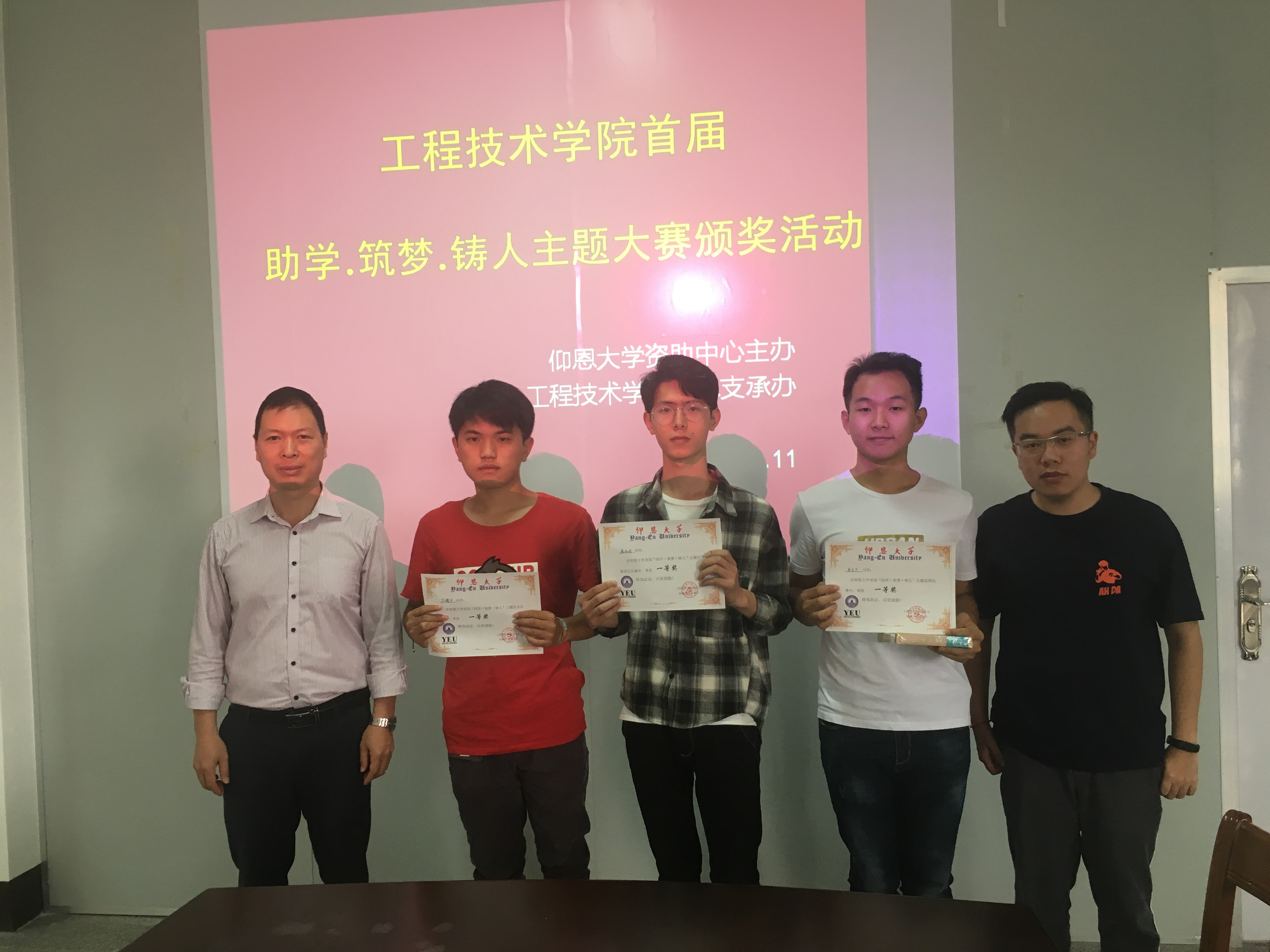 5月11日完美体育官方网站党总支在泽川楼四楼会议室进行“助学·筑梦·铸人”主题比赛的颁奖仪式。出席颁奖仪式学院党总支书记兼副院长曾凤生,总支副书记吕思仁,学务秘书陈旗敏以及学院辅导员,获奖者们得到了比赛的奖状和奖品,本次比赛取得圆满成功。