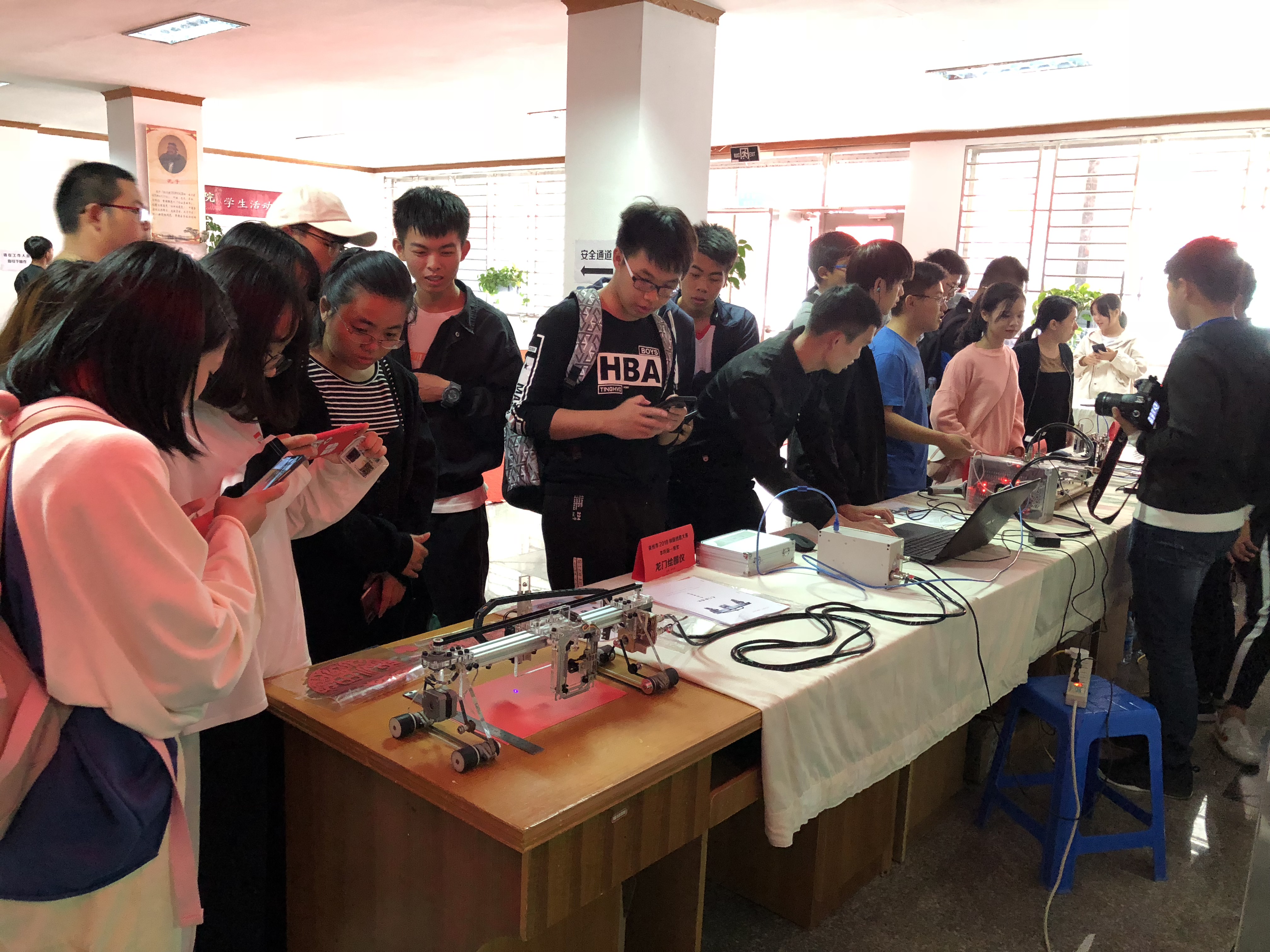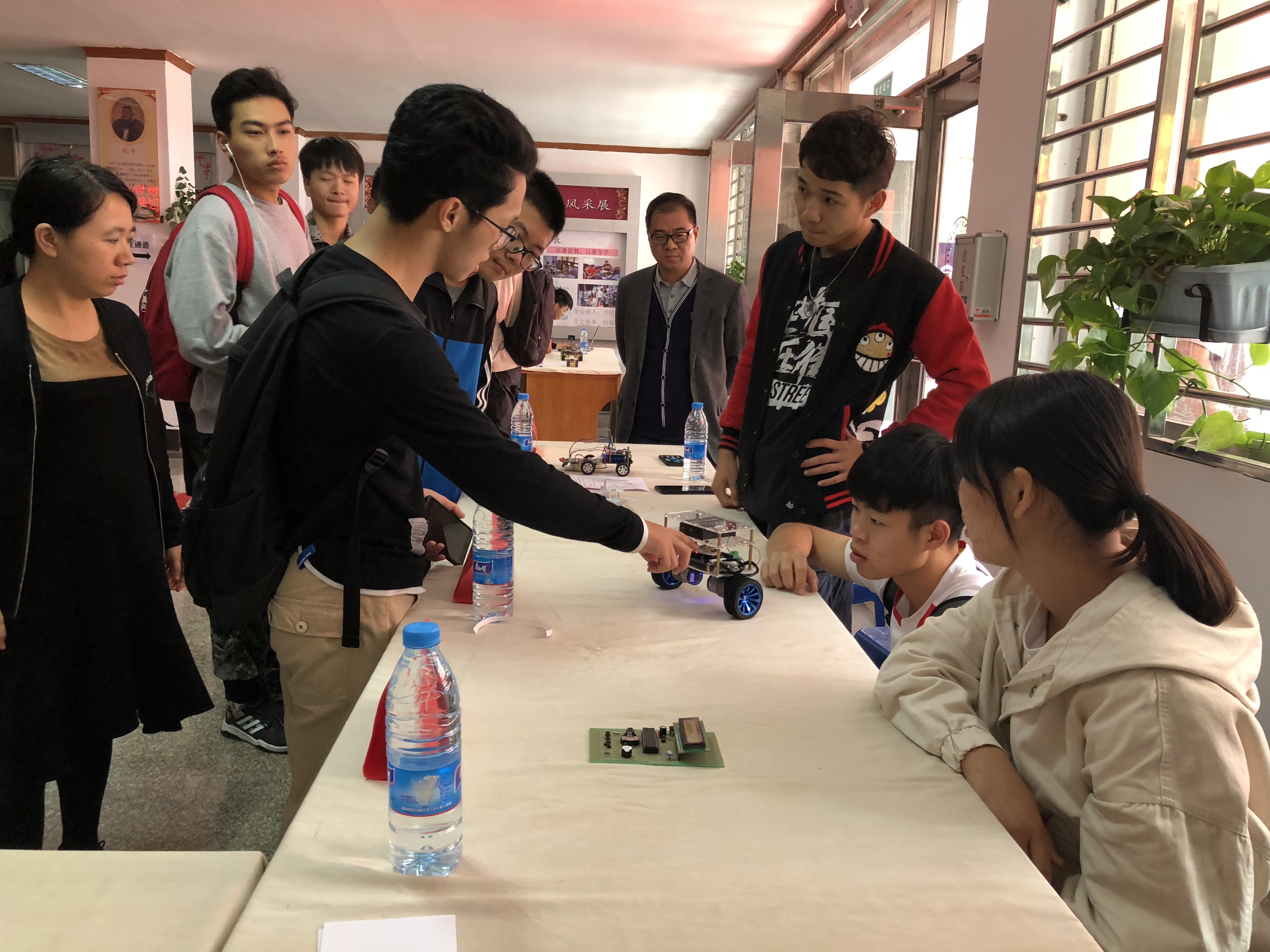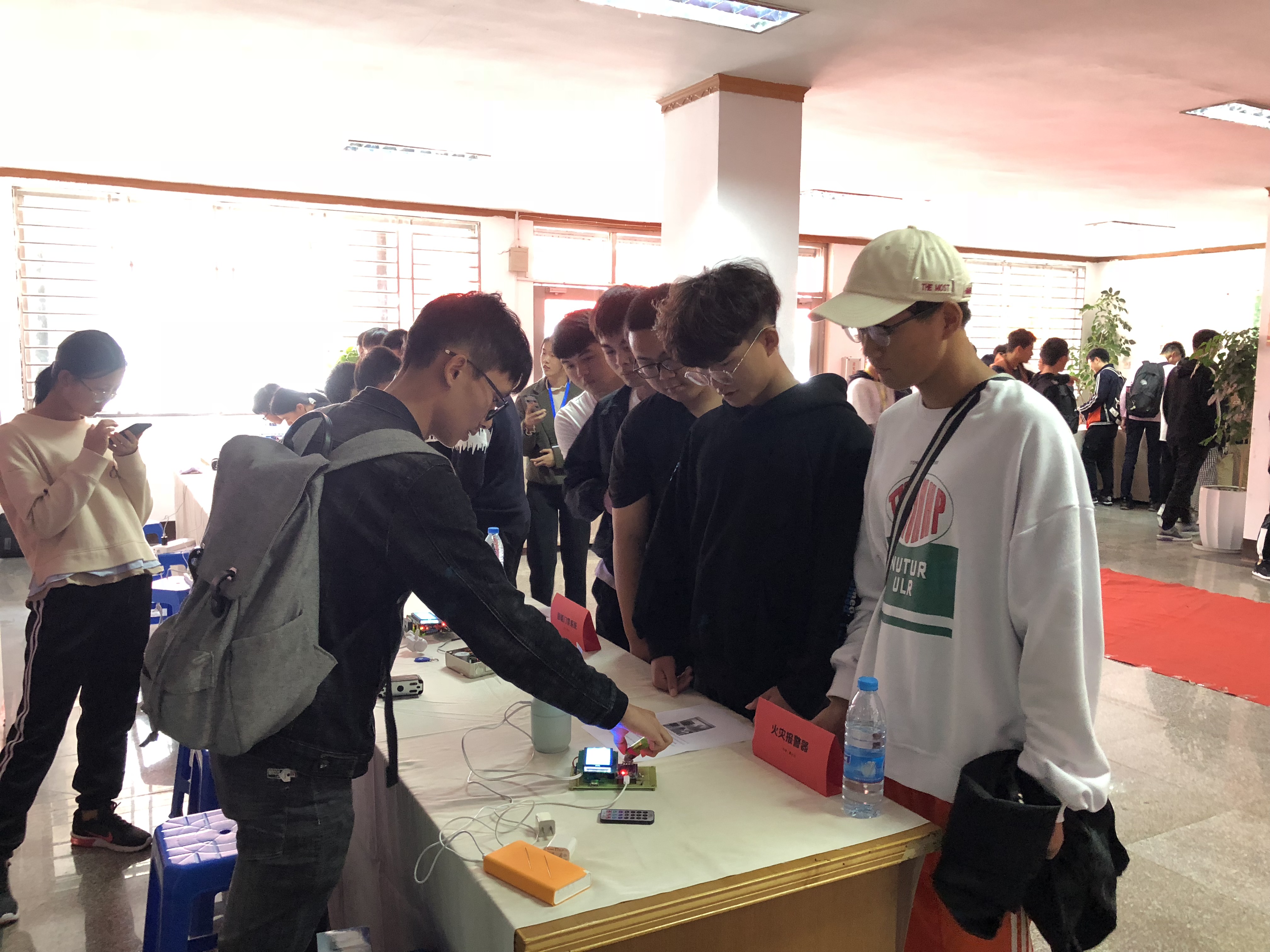 创新创意科技展参展作品大胆创新,作品包括避障扫地机器人、寻光避障小车、火灾报警器、智能门禁系统、龙门绘图仪、电影院售票系统建设、农田卫士、CNC雕刻机、居家安全系统、天然气检测报警器等三十个作品。展中,作者向观展教师学生讲解作品、工作原理、组成结构等。师生也会提出自己的想法和疑问,双向交流现场交流气氛十分活跃。