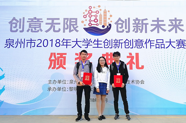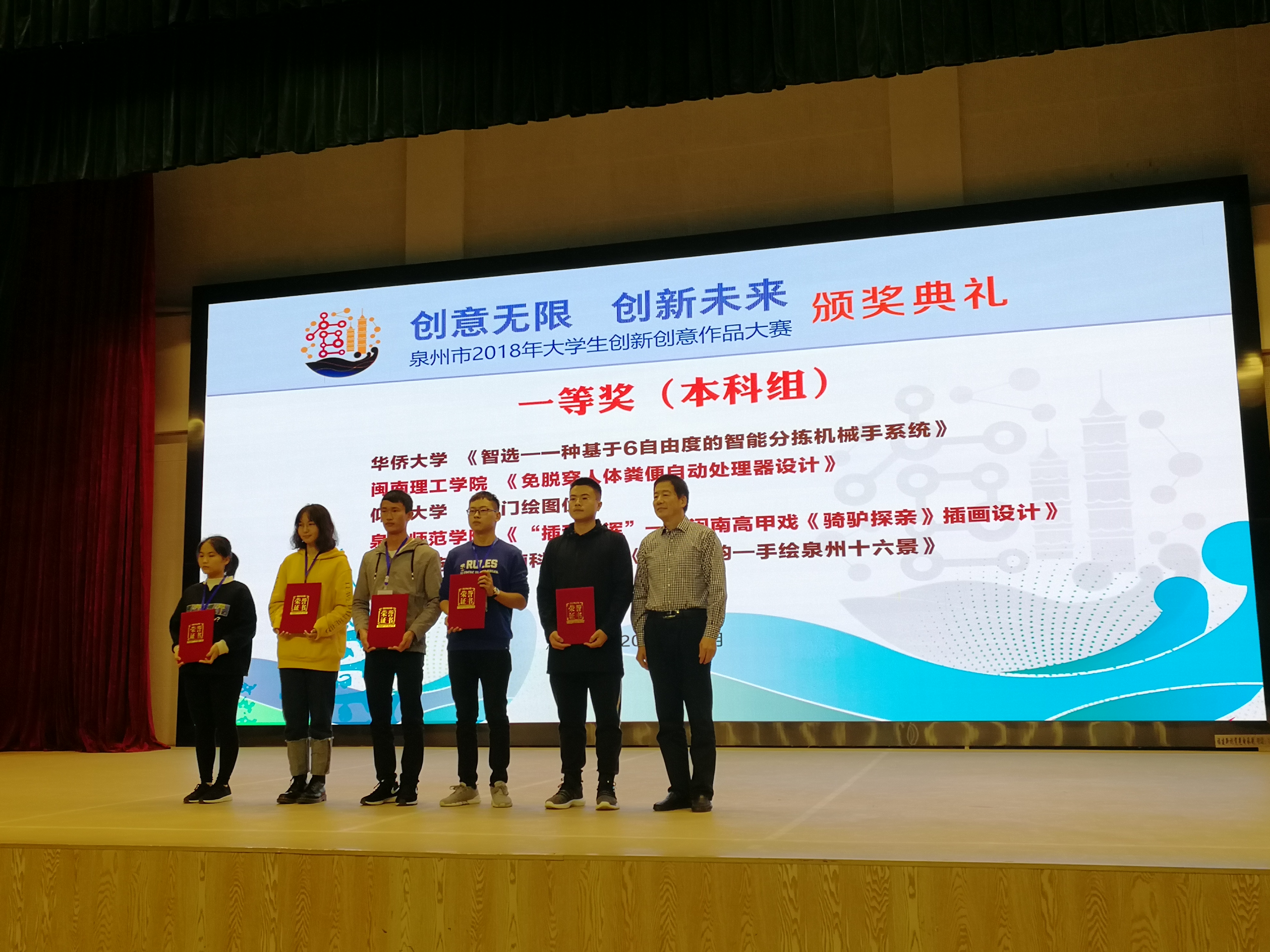 11月23日,泉州市2018年大学生创新创意作品大赛决赛在黎明职业大学举行。完美体育官网报送的作品《龙门绘图仪》荣获A组技术革新类一等奖,《奇幻之旅》荣获A组创意设计类二等奖。
