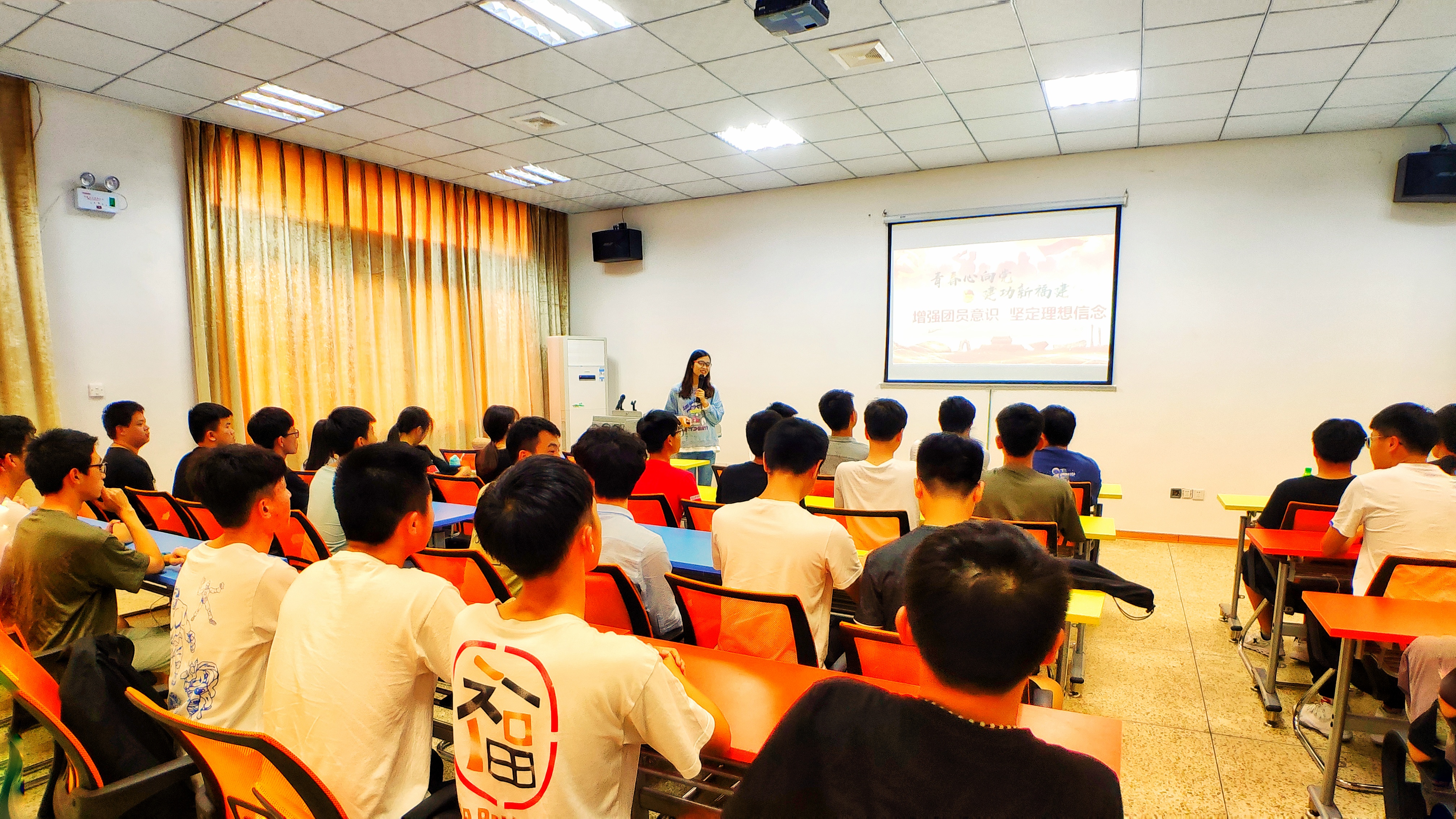 5月17日下午,以“青春心向党·建功新福建”为主题的“青马之光”主题宣讲活动完美体育官方网站宣讲会于第一教学区创业园培训室举行。此次活动邀请了人文学院团委书记朱婷主讲《增强团员意识,坚定理想信念》,2018级电气及其自动化1班团支部全体成员到场聆听。
