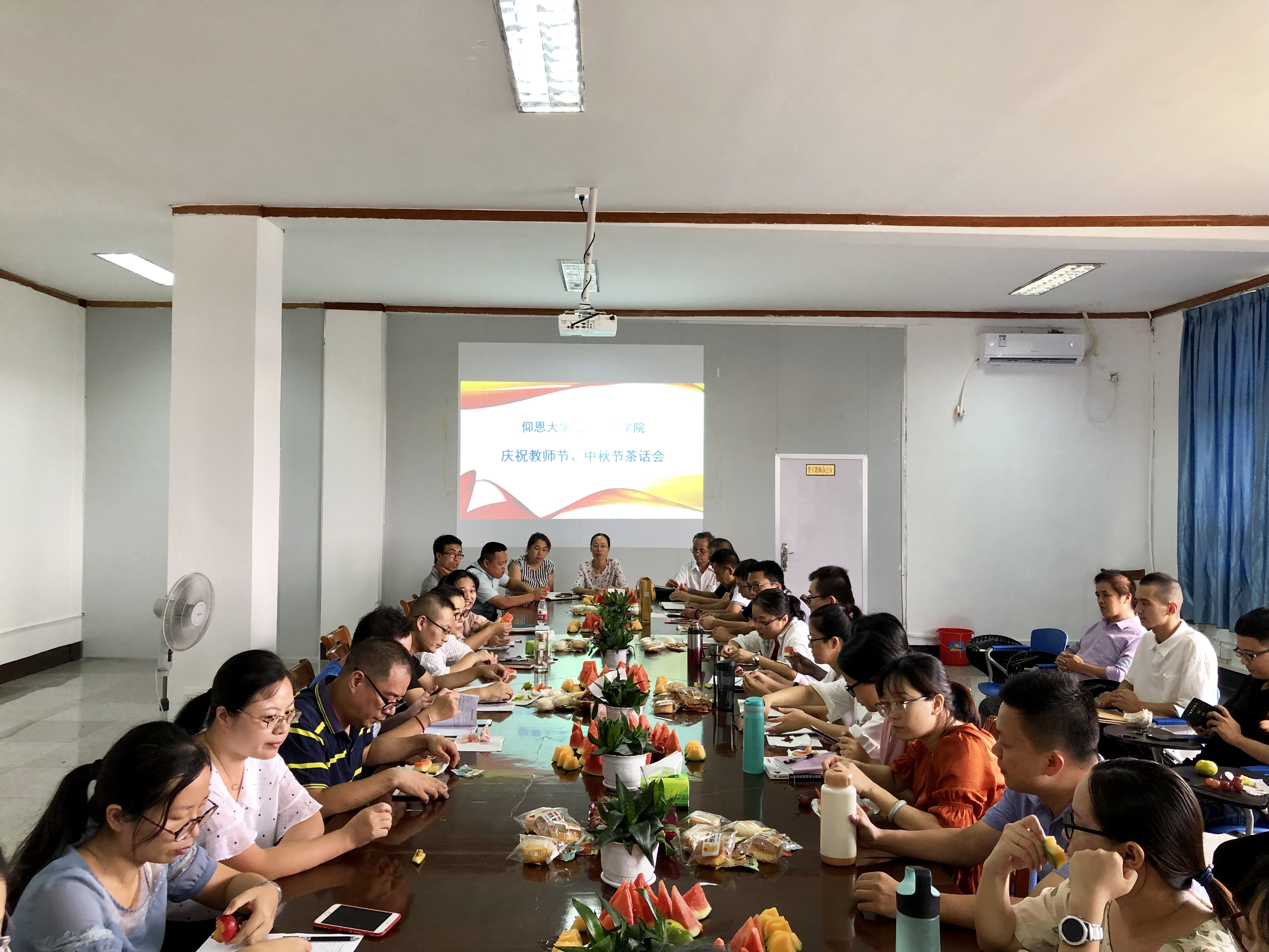 金色九月桂花香,花好月圆情满怀,“双节”聚会喜庆浓,风光无限夕阳红。9月11日下午,完美体育官方网站在泽钏楼会议室召开了庆祝第35个教师节和中秋节茶话会。全院教职工欢聚一堂共同庆祝教师节和中秋节,茶话会有学院常务副院长金承勇主持。
