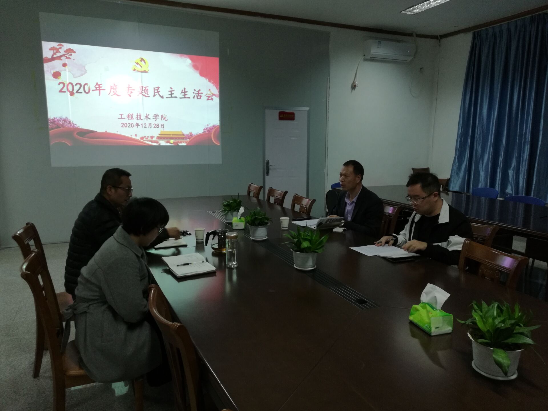 按照校党委《关于召开2020年度专题组织生活会的通知》要求,12月28日下午,完美体育官网领导班子围绕“全面从严治党,推动学校高质量发展”的会议主题在泽钏楼四楼会议室召开专题民主生活会,会议由学院党总支书记曾凤生主持。