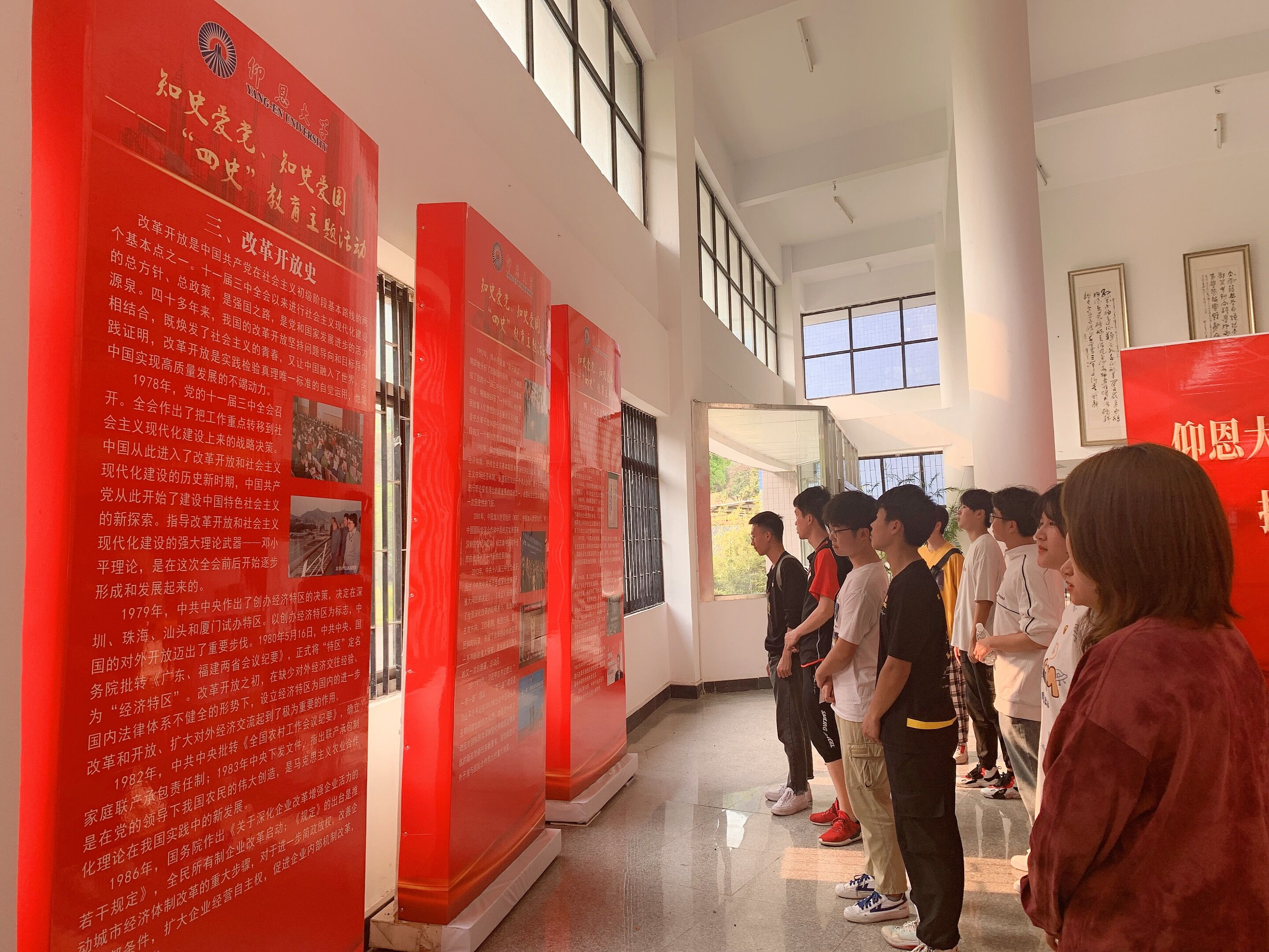 踏入展厅,一幅幅生动的画面立刻吸引了大家的目光。同学们依次参观了党史、新中国史、改革开放史、社会主义发展史四部分主题展板,一幅幅写实图片的展示,再现了我们党筚路蓝缕的艰苦奋斗历程和不畏生死的革命精神。