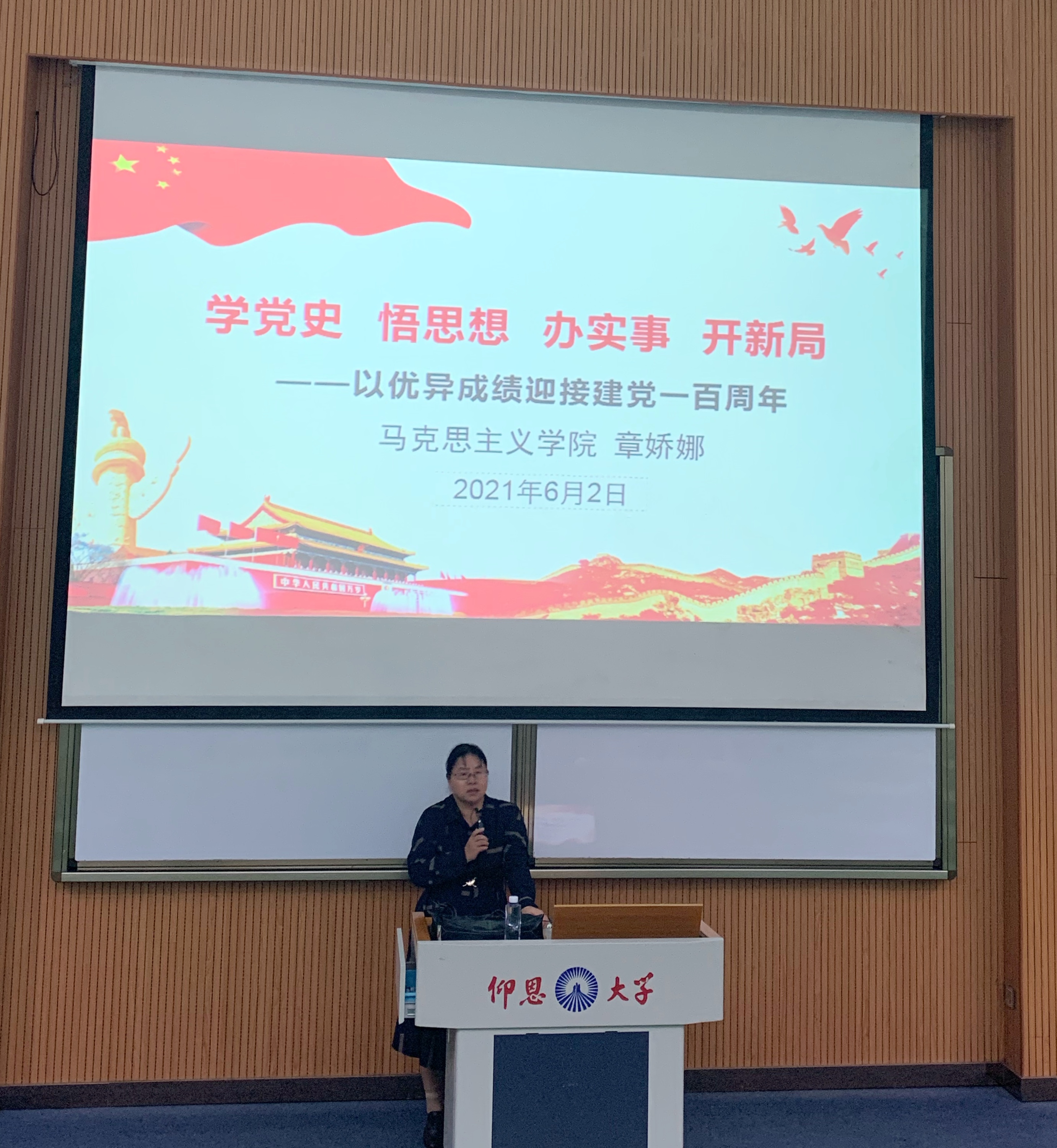 6月2日下午,完美体育官方网站联合现代教育技术中心于第一教学区和昌楼乐之讲堂开展党史学习教育报告会。校党史学习教育宣讲团成员、马克思主义学院副教授章娇娜做题为《学党史 悟思想 办实事 开新局——以优异成绩迎接建党一百周年》的专题报告。完美体育官方网站和现代教育技术中心全体师生党员到场聆听。