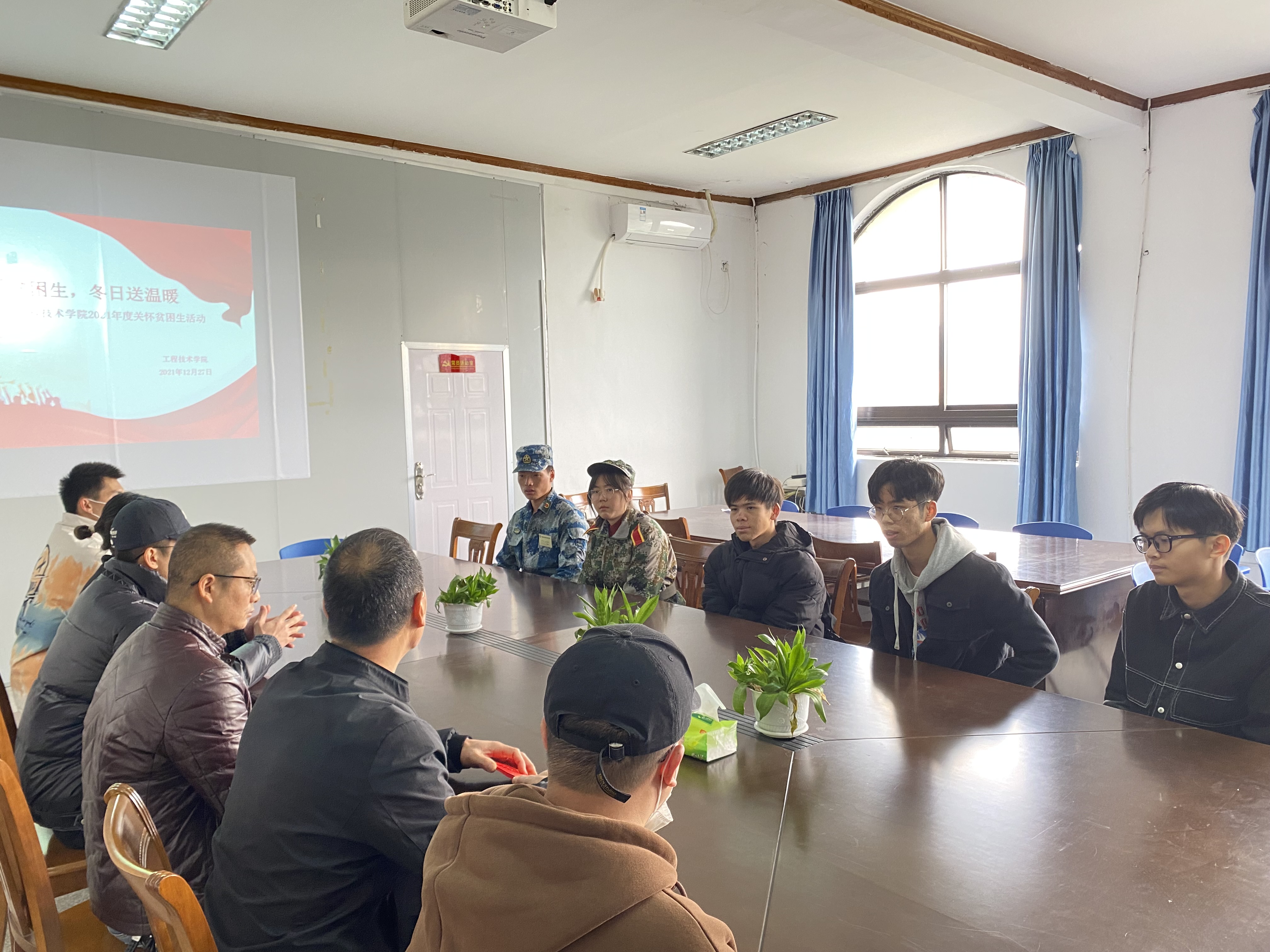 为进一步做好学院困难学生慰问工作,12月27日中午12时,完美体育官方网站于泽钏楼四楼会议室召开元旦贫困学生代表慰问会。学院党总支书记曾凤生,常务副院长金承勇,党总支副书记吕思仁,全体辅导员出席会议并与困难学生亲切座谈。