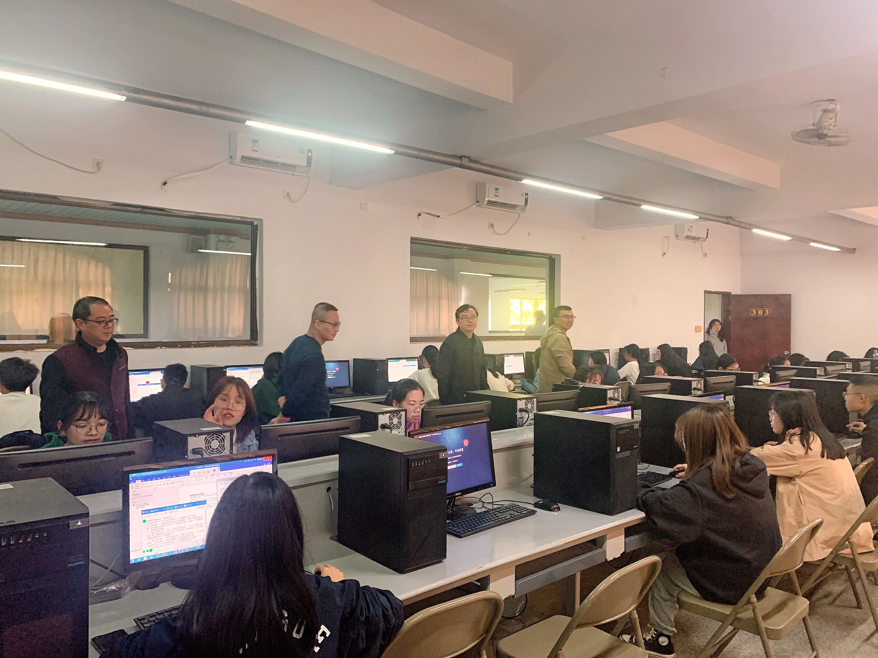 为切实做好我校2021年上半年全国计算机等级考试考务工作,3月25日上午,完美体育官方网站组织召开全国计算机等级考试(NCRE)完美体育官方网站考点考务、监考培训会,统筹协调和落实考试各项工作。 下午,在泽川楼301、302、303、305、310教室进行模拟测试,教务部主任郑兆领、学院常务副院长金承勇、实验中心主任简榕杰等到教室了解学生模拟测试情况。