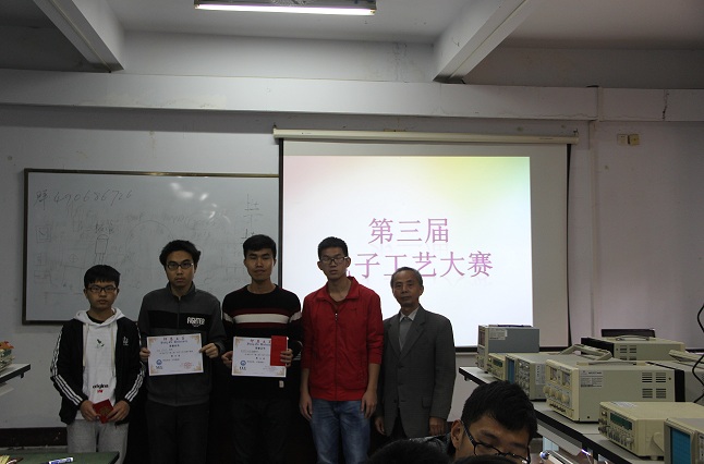 2017年3月25日,为了丰富校园文化与同学们的课余生活,提高科技活动的参与热情,增进科技创新的氛围,完美体育官方网站学生联合电子数模协会举办的“第三届电子工艺大赛”在泽钏楼108展开。此次大赛评委由完美体育官方网站卢容德教授和吴秀丽担任。