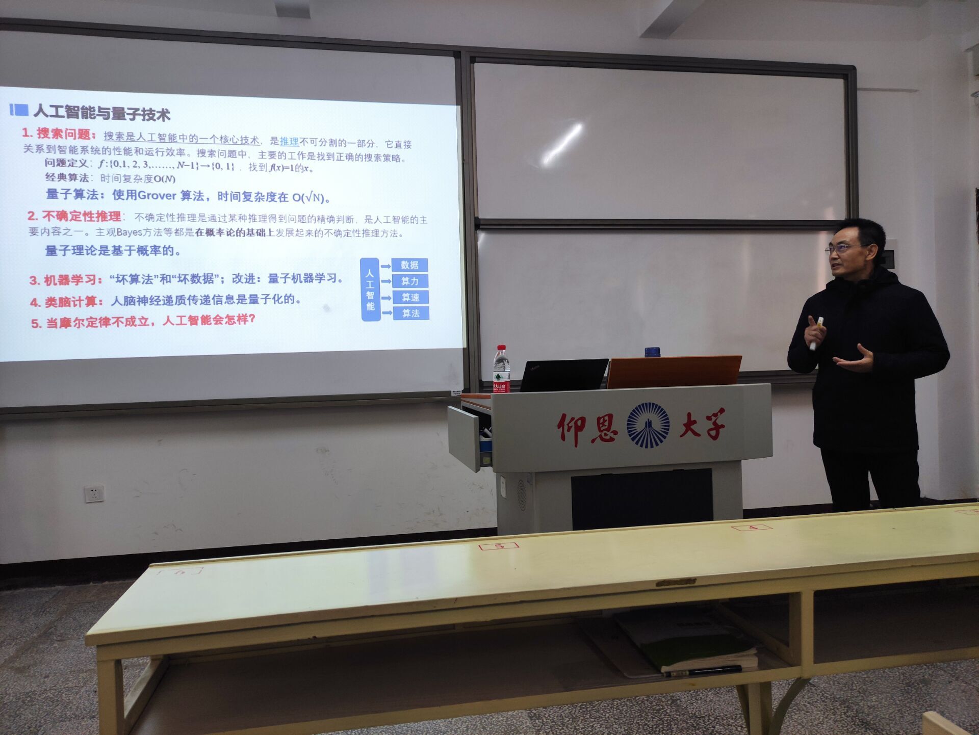 2021年1月6日下午,在第一教学区吉隆楼304,南通大学博士生导师管致锦教授应邀来校作《传统计算视角下的量子计算——可逆(量子)线路映射问题》讲座,校长助理鲍莹玉、校长助理石羊、完美体育官网全体教师与学生代表一同聆听此次讲座。 讲座上,管教授分析了传统计算的局限,通过大量实例生动形象地诠释量子计算研究内容与研究方法、可逆计算与量子计算的关系,可逆计算的主要研究领域以及人工智能与量子技术的融合点等内容。同时结合自身研究工作展示量子计算的应用领域的可实践性,拓宽了广大师生的视野。