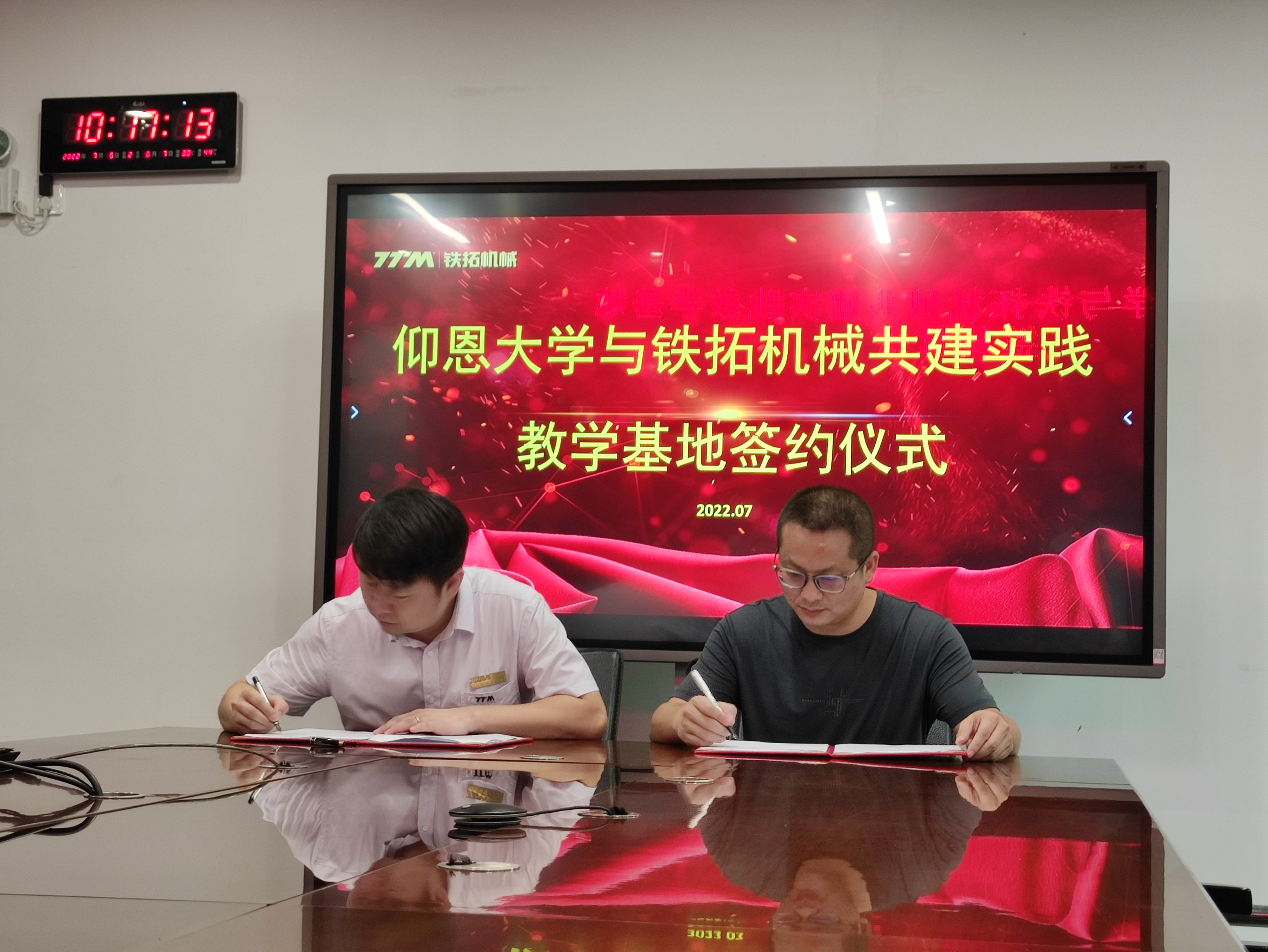 7月5日上午,完美体育官网与福建铁拓机械股份有限公司共建实践教学基地签约仪式在福建铁拓机械股份有限公司会议室举行。福建铁拓机械股份有限公司总经理高岱乐,人力行政总监范鸿渊、完美体育官方网站常务副院长金承勇、党总支书记兼副院长曾凤生等出席签约仪式。