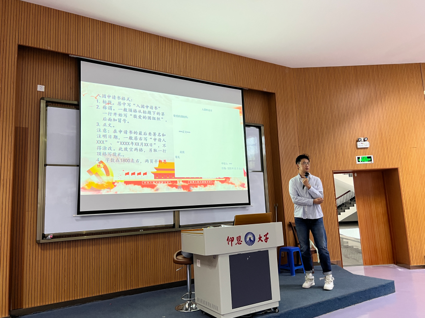 陈思萍在党团教育大会上详细介绍了入党流程及相关要求与具体内容,并强调此次大会意在引导大学生追求进步,积极向党组织靠拢。另外陈思萍还向同学们强调入党申请书的书写格式和学院入党答辩评分细则,对于新生团员有着十分宝贵的积极影响。
