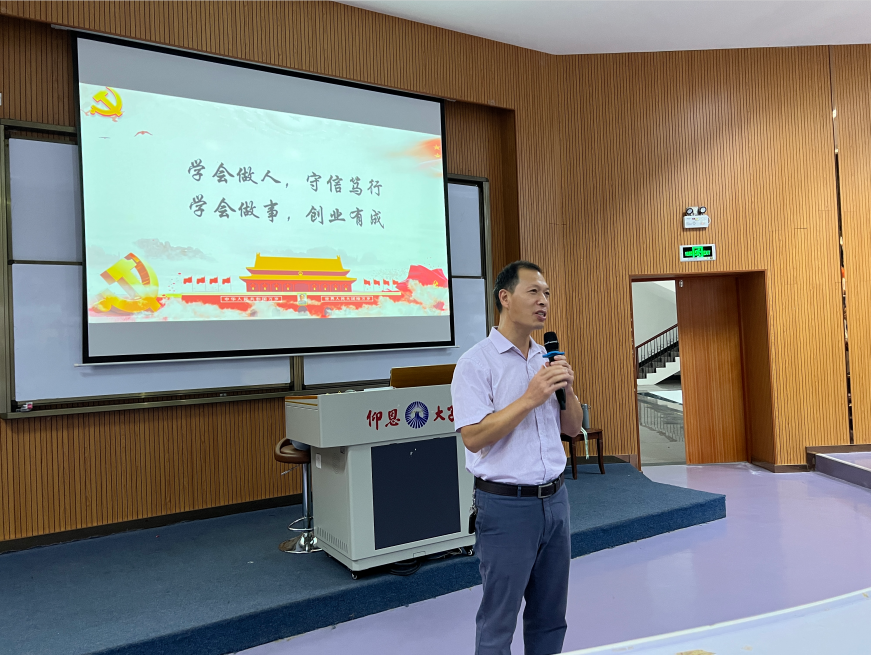曾凤生引用身边发生的事例教导新生品行要端正,心胸要宽广,树立正确的价值观,强调当代年轻人要有乐观向上的积极心态和斗志昂扬的精神面貌。新生们认真听讲,积极与曾凤生互动,展现出积极向团组织和党组织靠拢的强烈决心。
