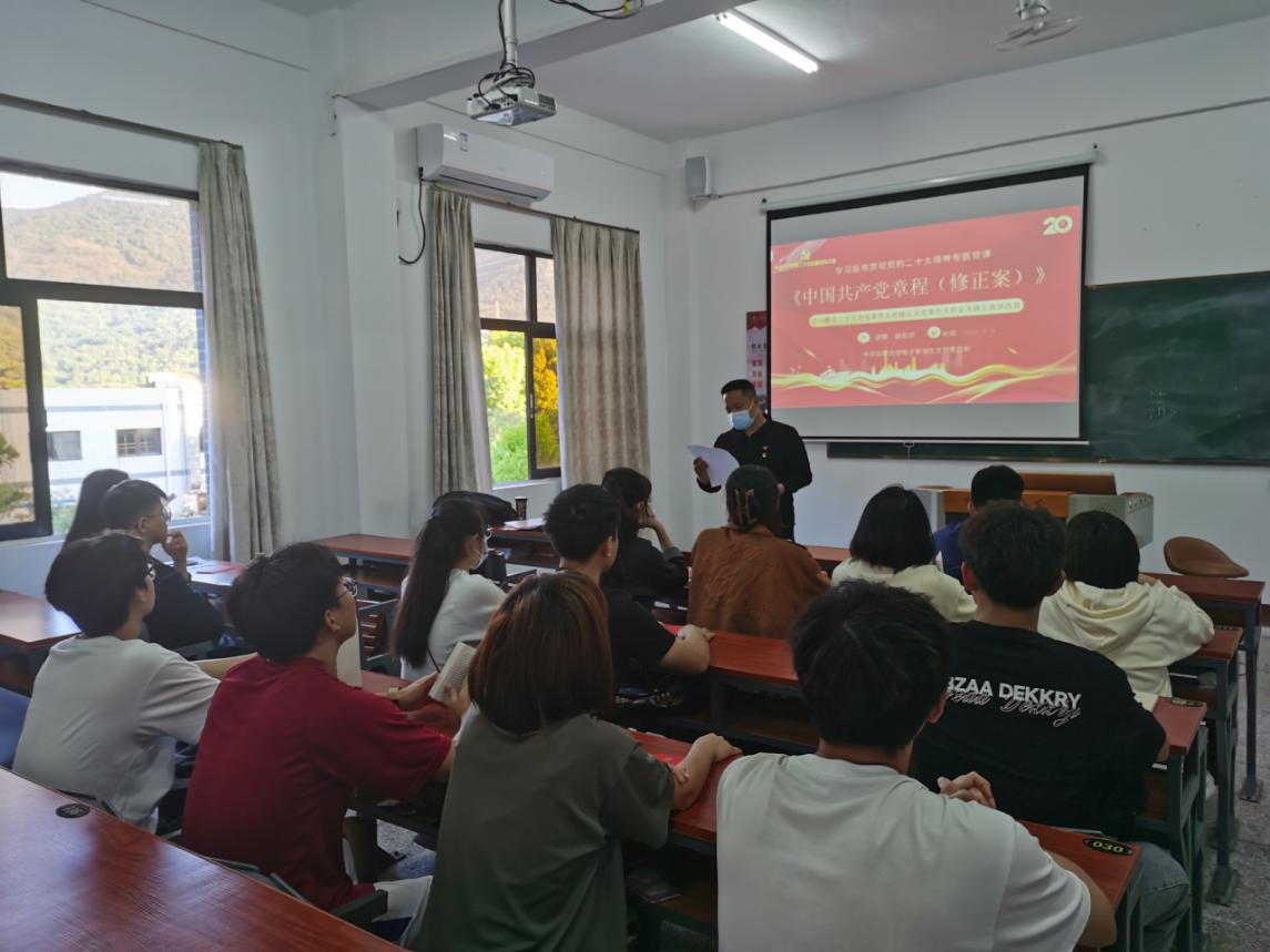 2022年11月10日,中共完美体育官方网站电子系学生支部委员会开展围绕学习贯彻党的二十大精神,以《二十大对党章作出的修正》为题的专题党课。支部全体党员出席,会议由支部书记赵宏岩同志主持。