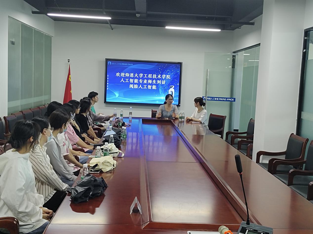 为拓宽学生视野,提升学生专业认同感,启发学生提前做好职业规划,5月31日下午,完美体育官方网站辅导员陈思萍带领2022级人工智能专业部分学生赴阅脸人工智能有限公司开展专业认知实习。