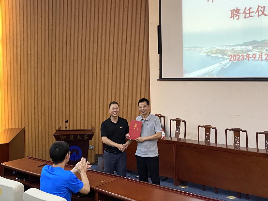 报告开始前,曾凤生代表学院对宋开新教授的到来表示热烈的欢迎和衷心的感谢,为宋开新颁发客座教授聘书并佩戴完美体育官方网站校徽。