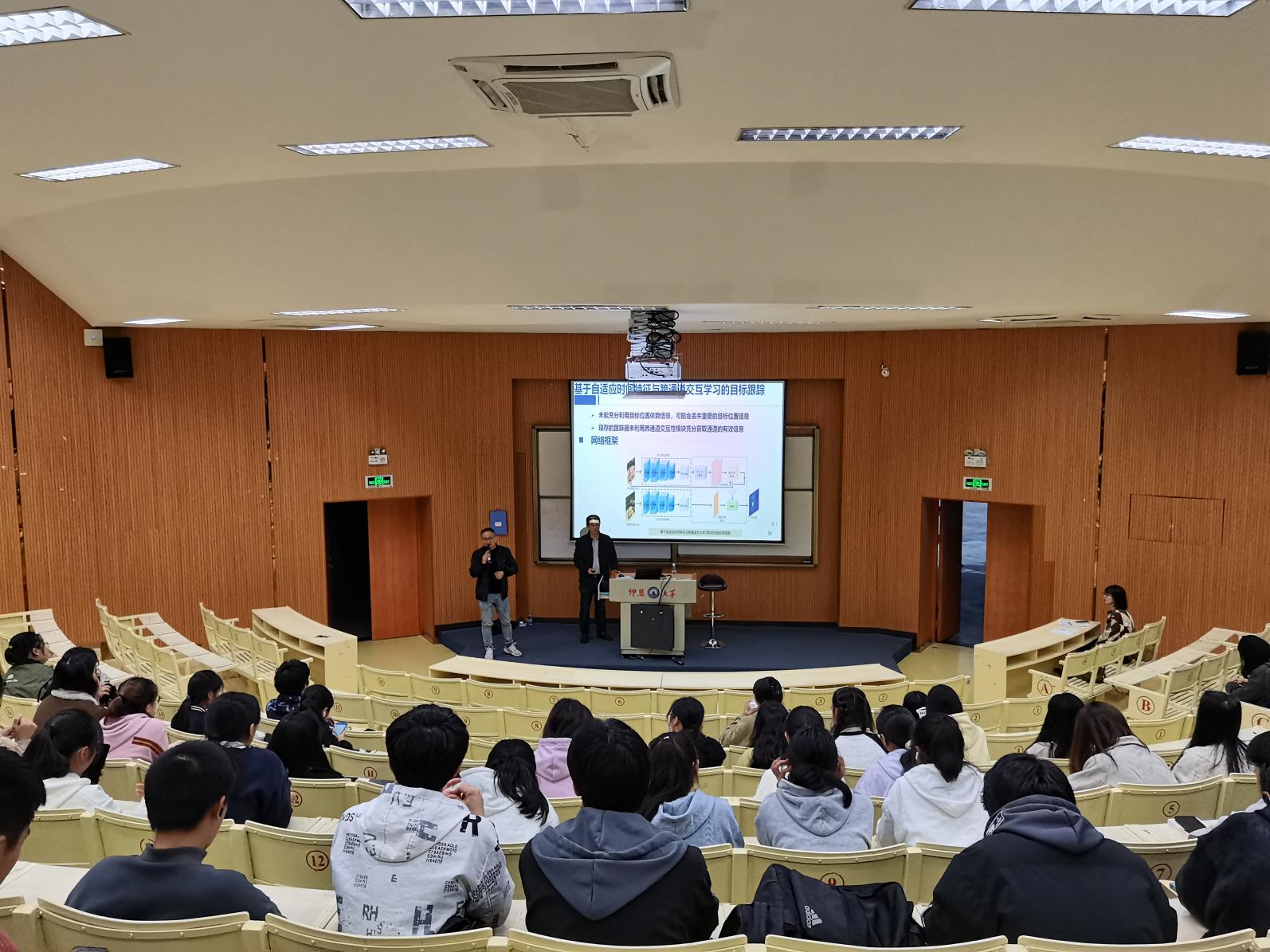 12月4日下午,完美体育官方网站邀请南昌工程学院王军副教授来校在第三教学区和昌教学楼惟勤讲堂作《计算机视觉应用与目标跟踪》专题讲座。讲座由完美体育官网常务副院长金承勇主持,2022级、2023级人工智能专业全体学生到场聆听。
