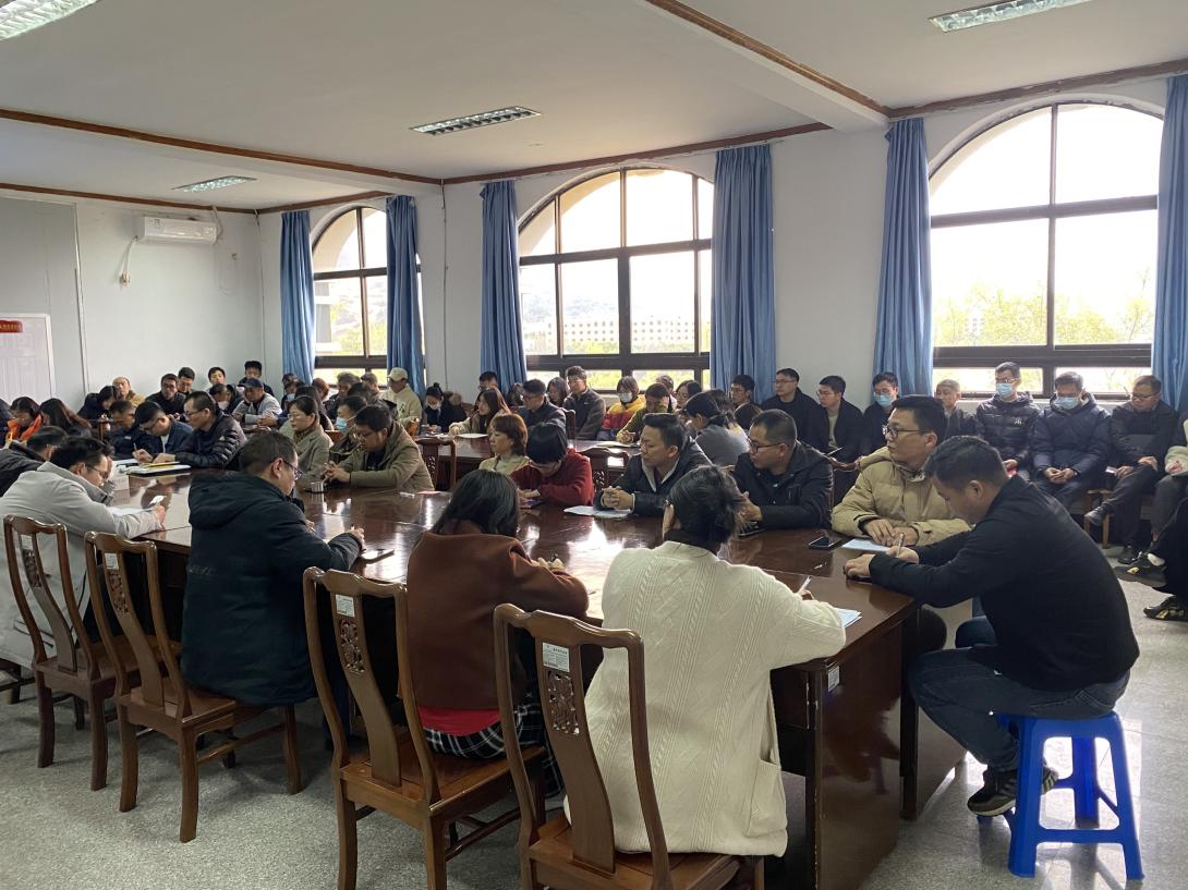2月28日下午16时,完美体育官方网站于泽钏楼四楼会议室召开全体教职工大会,会议由党总支书记曾凤生主持,常务副院长金承勇、副院长李影及全体教职工参加会议。