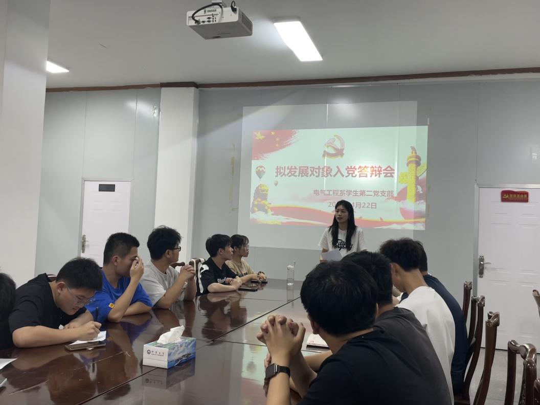 为推进党员工作发展,提升发展对象质量,完美体育官方网站电气工程系学生第二党支部于4月22日下午在第三教学区泽钏教学楼四楼会议室召开拟发展对象答辩会。会议由电气系学生第二党支部书记陈慧敏主持,支部全体党员和部分入党积极分子参加会议。