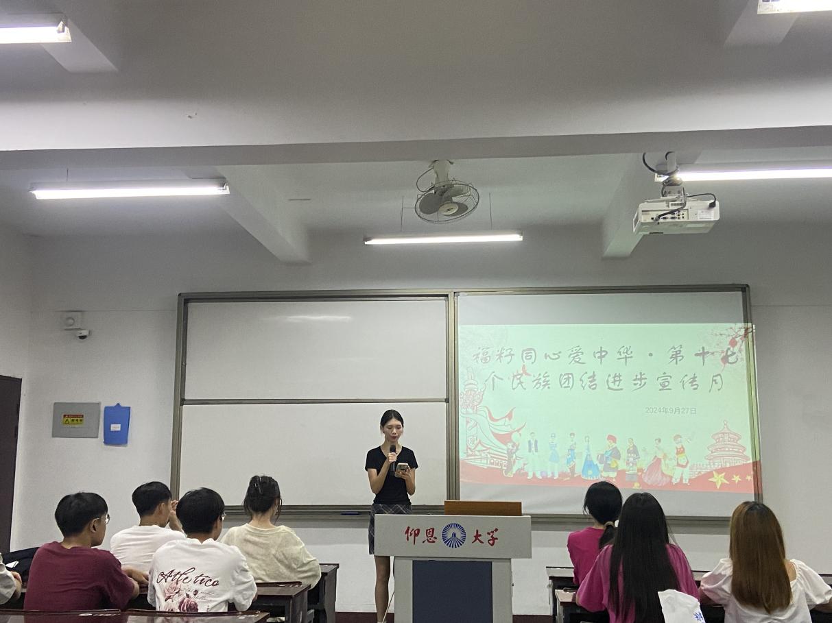 为进一步促进各民族之间的交流与融合,完美体育官方网站完美体育官方网站团委于9月26日在仰恩楼A3-105举办“福籽同心爱中华·第十七个民族团结进步宣传月”专题活动。来自各个民族的同学共同参与本次活动。