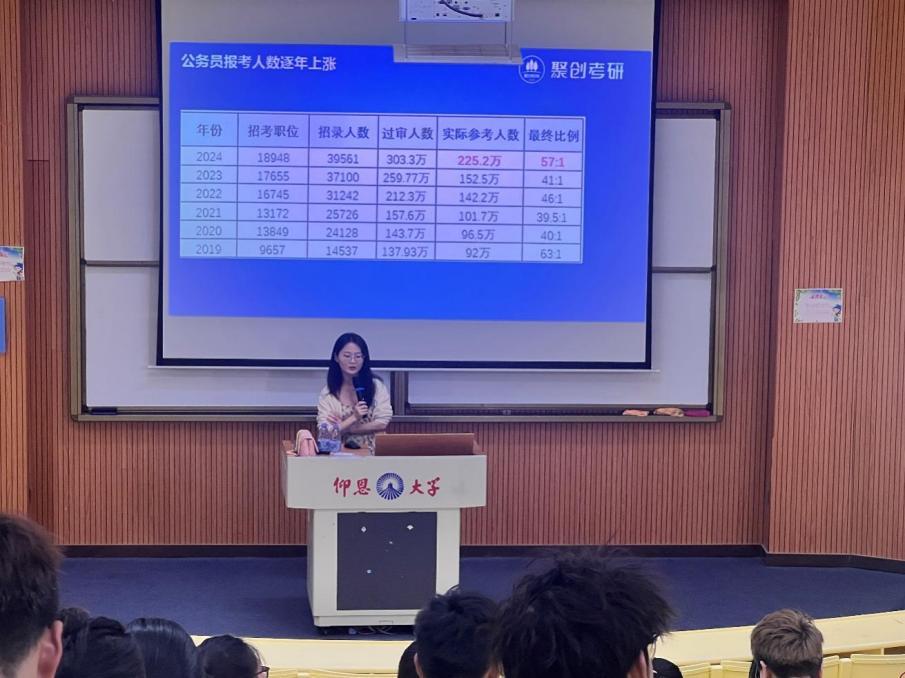张婷老师首先聚焦工科类专业的考公和考研形势展开深度剖析。她以详实的数据解读热门院校近年的招生政策,帮助同学们明晰考研局势优势,精准选择赛道。