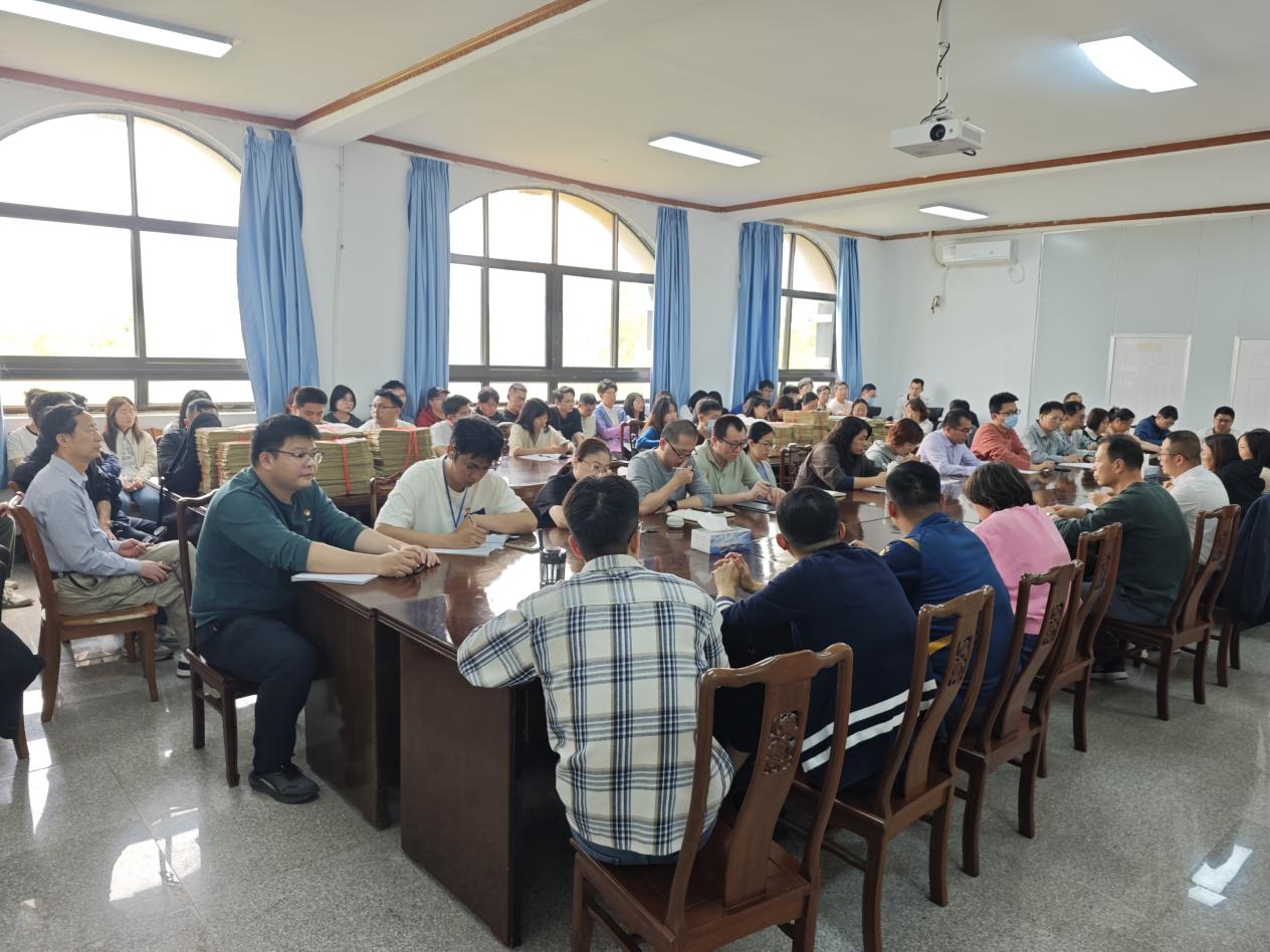 为扎实推进本科教育教学审核评估工作,确保学院教育教学质量的全面提升,2025年4月9日,工程技术学院在泽钏楼4楼会议室召开全院教职工大会暨本科教学审核评估推进会。会议由副院长金承勇主持,学院党总支书记曾凤生、副院长李影出席会议,各系主任、全体专任教师及辅导员参会。