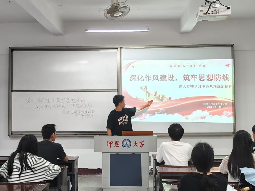 2025年4月16日,完美体育官方网站网络工程系学生党支部积极响应号召,开展深入贯彻中央八项规定精神学习教育,通过理论学习深化作风建设,增强党员干部的纪律观念和工作效率。